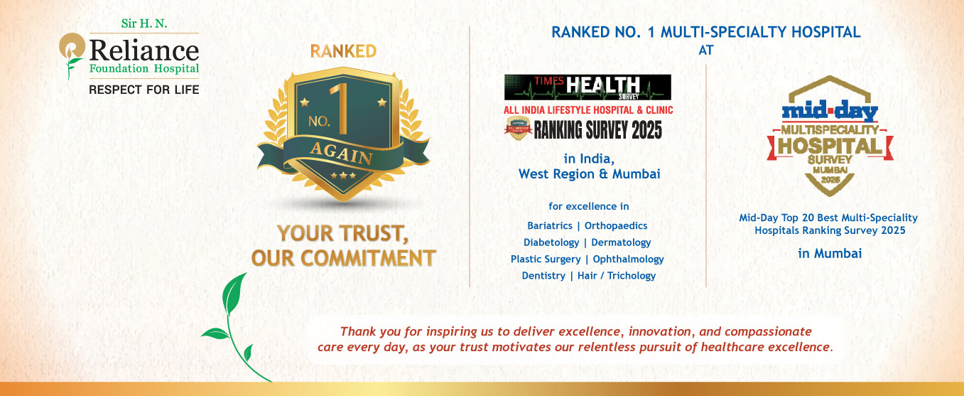 Patient First Team Work Respect Integrity Accountability Excellence Our Services Heart & Vascular Care Cancer Care Brain & Nerve Care Bone, Joints & Spine Care View All Your Journey to Health, Our Commitment to Care Story of Mr. Harikishan Kawa – From Parkinson’s to Parkinson-free 32-Year-Old Saved from the Clutches of a Fatal Autoimmune Disorder A Journey of Healing: The Courageous Child's Triumph over Brain Cancer VIDEO Story of Mr. Harikishan Kawa – From Parkinson’s to Parkinson-free VIDEO 32-Year-Old Saved from the Clutches of a Fatal Autoimmune Disorder VIDEO A Journey of Healing: The Courageous Child's Triumph over Brain Cancer The Care You Need from Doctors You Trust Departments --Select a Department-- Cardiology Cardiac Surgery Surgical Oncology Medical Oncology Radiation Oncology Neurology Neuro Surgery Peadiatric Neurology Peadiatric Neuro Surgery Urology Nephrology Kidney Transplant Skin Health and Rejuvenation Centre Gastroenterology & GI Endoscopy Hepatology Hepato-Pancreato-Biliary (HPB) Surgery Paediatric Hepatology & Gastroenterology Orthopaedics & Joint Replacement Orthopaedic Spine Surgery Rheumatology Paediatric Orthopaedics Rehabilitation & Sports Medicine Sports Medicine General Paediatrics Neonatology Paediatric Genetics Paediatric Neurosciences Paediatric Cardiology Paediatric Endocrinology Paediatric Urology Paediatric Nephrology Paediatric Hemato Oncology & BMT Paediatric Psychology Paediatric Surgery Paediatric Cardiac Surgery Paediatric Critical Care Paediatric Intensive Care Heart Transplant Lung Transplant Liver Transplant Pediatric Bone Marrow Transplant Organ Donation Anaesthesia & Pain Management Anesthesia Services Internal Medicine and Geriatrics Geriatric Medicine Infectious Diseases Haematology, Haemato-Oncology & Bone Marrow Transplantation (BMT) Emergency Medical Services Ophthalmology ENT Dental Services Endocrinology Nutrition & Dietetics Dermatology Pulmonology Pulmonary & Sleep Medicine Interventional Pulmonology Plastic & Reconstructive Surgery Hair Transplant Clinical Psychology Psychiatry Laboratory Medicine Radiology & Imaging Nuclear Medicine Home Collection Dept of Blood Bank Genetic Counselling Medical Genetics Obstetrics & Gynaecology General & Minimal Access Surgery Critical Care Well Women Centre Pain & Palliative Allergy Sciences Paediatric Rheumatology Paediatric Immunology Paediatric Allergy & Respiratory Medicine Paediatric Ophthalmology Paediatric Dentistry Paediatric Dermatology Paediatric Transplant Child counselling and Behavioural disorders Neuro Spine Surgery Neurointerventional Surgery Interventional Radiology Thoracic Surgery Cardiopulmonary Rehabilitation Musculoskeletal Rehabilitation Orthopaedic Rehabilitation Neurorehabilitation Homeopathy Doctors --Select a Doctor-- Know More About Our Doctors Recent Updates Jun 23 Online Want to pop a pimple before a big day? Dermat shares how to do it safely, step by step Jun 22 Print When Doctors Need a Yoga Break Apr 25 A Guide to Consuming Protein Supplements the Right Way and Their Long-Term Benefits Events April 25 Structural Heart Summit April 18 22nd Mumbai Live Endoscopy 2025 February 22 ReNew Awards New Health Seva Plan Explore Redefining CT. Redefining Care. Explore To Book An Appointment Click Here Own the Tough Call Explore TOI – Lifestyle Ranking Survey 2025 and Mid Day – Multi Specialty Hospital Survey 2025 Explore Times of India Critical Care Hospital Ranking Survey 2025 Explore Reliance Foundation Hospital has achieved the prestigious No. 1 ranking in India Explore World's Widest and Asia's First High-Field Open MRI Explore Launch of Pancreas Stone Centre Explore India's First ETHOS Adaptive Radiotherapy with SGRT Explore International Patients The Hospital has a Medical Mall with progressive diagnostic services, including Laboratories, Radiology & Imaging, and Nuclear Medicine. This technologically advanced institution has been designed in adherence with international standards, meeting the most stringent guidelines in terms of infrastructure, medical care, fire safety, and environmental safety. Explore Success Stories As a lawyer, terms like "heart attack" and "angioplasty" were not part of my daily life—until one hit me, completely out of the blue. Beyond the physical toll, the mental strain and anxiety were overwhelming.Thankfully, Sir H.N. Reliance Foundation Hospital became my guiding light during this challenging time. From the swift actions of Dr. Rishikesh in the ER to Dr. Manoj Mushru and his team's expertise during my procedure, the care was exceptional. They kept me informed every step of the way, easing my anxiety.Post-surgery, Dr. Aashish Contractor's informed advice and support, along with Dr. Disha Pujari and Dr. Sanika Singh’s relentless efforts during my recovery, helped me regain my strength. Their dedication and encouragement made all the difference.This journey was also made bearable by the unwavering support of my wife, a physiotherapist at the hospital, whose strength became my anchor.Today, I stand stronger—thanks to the incredible team at H.N. Reliance Foundation Hospital. They are truly a trusted partner in heart health. ~Aditya Raut During the ninth month of my pregnancy, I began experiencing severe breathing issues. None of the hospitals were willing to take my case, and I was losing hope as my condition worsened.At 3:00 a.m., we rushed to Sir H.N. Reliance Foundation Hospital based on a recommendation, and it was the best decision we made. The care and treatment I received not only restored my hope but also ensured a normal delivery of my daughter.Under the expert guidance of Dr. Talha Meeran, my heart's pumping capacity improved from 30% to 50%. Even now, as I continue my treatment, Dr. Meeran and his team provide exceptional care, patiently addressing all my queries and guiding me through every step.I am deeply grateful to Dr. Talha Meeran, Dr. Himangi, and the entire team at Sir H.N. Reliance Foundation Hospital for the